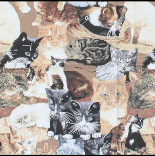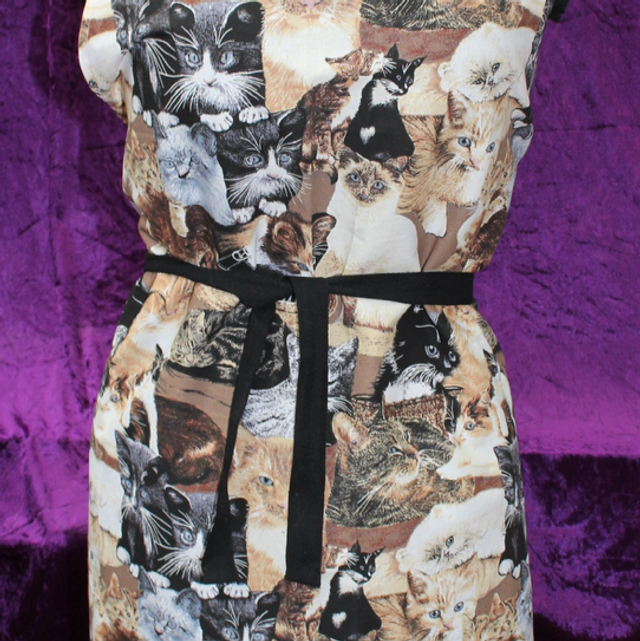 Made in a cotton fabric and has tie cotton webbing straps around the middle so it is adjustable for size