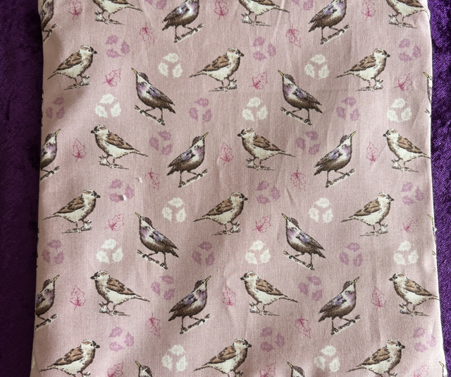 Wash Bag in a design of birds on a pink background with a pink water resistant lining.